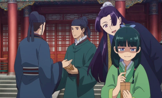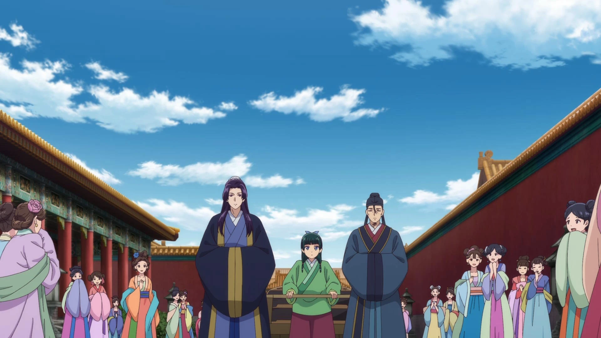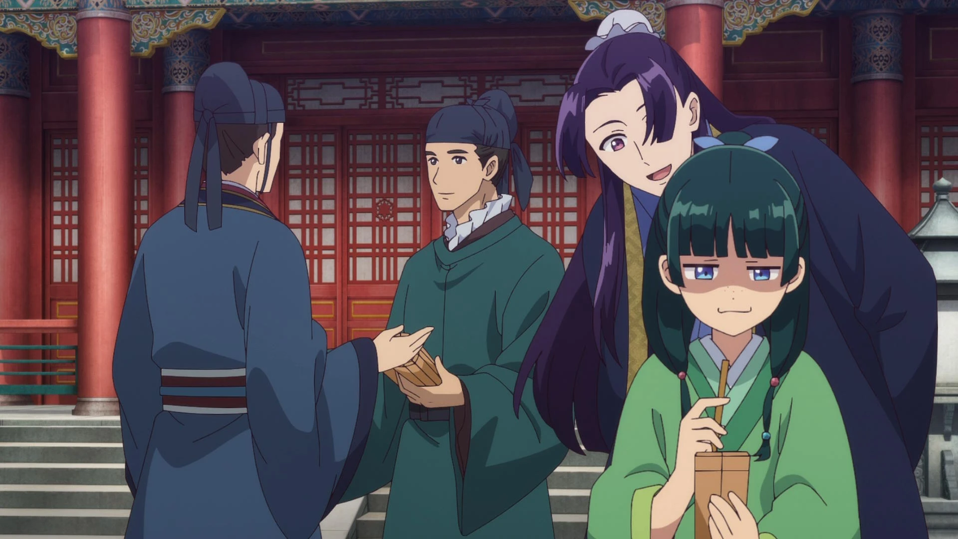 Маомао теперь Сяомао. Так ее прозвала суровая домоправительница, которая бдит за территорией господина Женьши. Видите ли, Маомао-Сяомао устроила на заднем дворе будущий палисадник. Выглядит это примерно так, будто всю землю там перерыли кроты. Конечно, добрую на вид, но строгую внутри пожилую женщину, которая знает это место с детских лет, не устроит, что какая-то девка с улицы начнет наводить здесь свои порядки. Потому-то наша героиня взяла ноги в руки и дала по тапкам.
