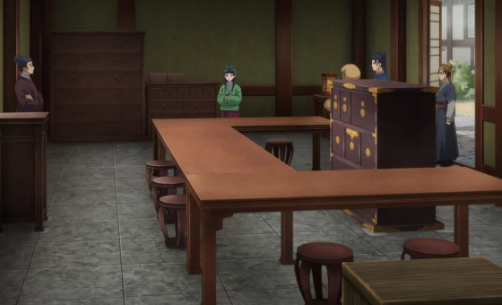 По прибытии туда Сяомао знакомится с братьями-кузнецами. Дружелюбным оказывается только младшенький. Двое других проявляют недоверие. Но была здесь другая странность — интересное расположение мебели. Богатый комод стоял прямо по центру комнаты, его огибал изогнутый обеденный стол, и было всего одно окно. Находилось оно посередине и выглядело по-европейски вытянутым. Его явно не хватало, чтобы напитать комнату солнечным свечением. К тому же прямо перед ним росло каштановое дерево, закрывая собой добрую половину света. Также сам комод был прикручен к полу, а на его ящичках виднелись золотистые наличники и скобы. На всех они были одинаковые. Отличался только ящик центральный. А на тумбочке, стоящей под окном, проявился след от чего-то, что когда-то стояло здесь раньше. Что было дальше, смотрите в 16 серии «Монолог фармацевта».