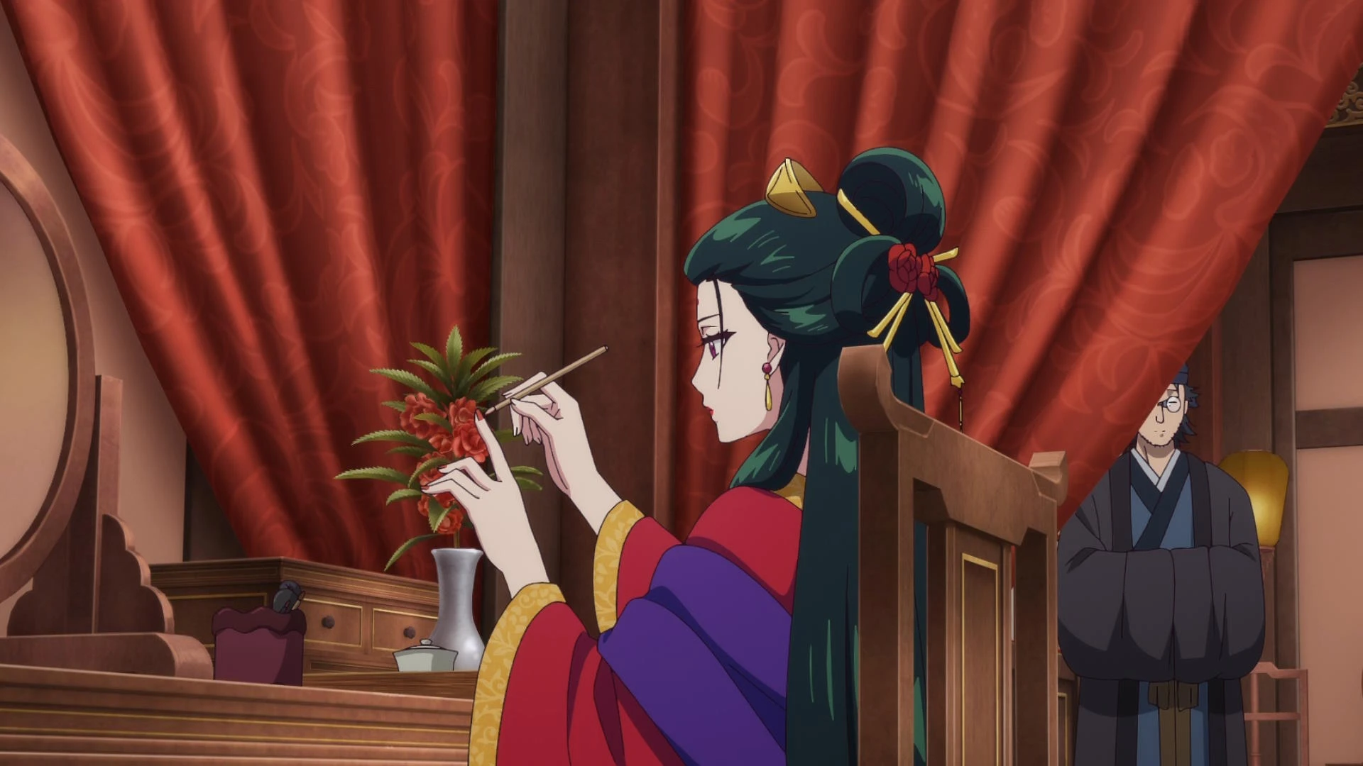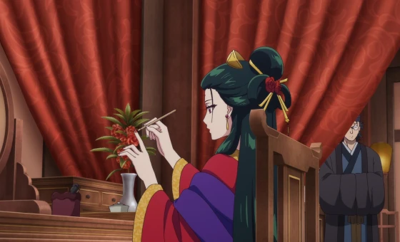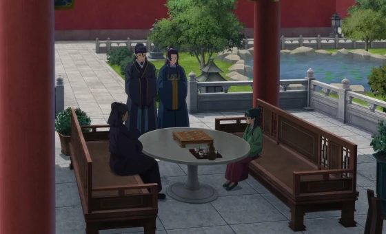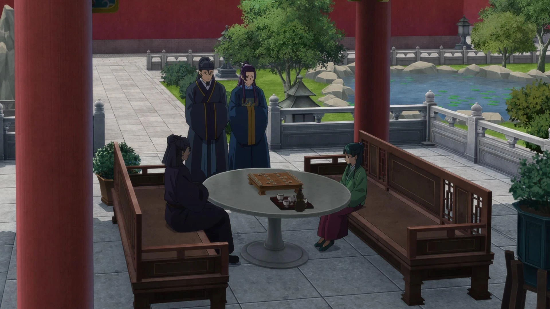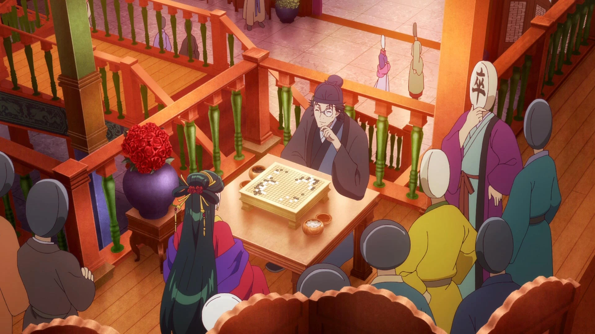Маомао предлагает сыграть в игру и Лаохань соглашается. Играют пять партий, до трех побед. Если девушка проиграет, она отработает свой срок у нынешнего господина, а после совершенно бесплатно перейдет к нему во служение. Ну, а если она победит, Лаохань должен пообещать, что выкупит одну стареющую куртизанку Медяного Дома. Правда есть еще второе условие. Маомао добавит яд в три из пяти чарок с крепким алкоголем. Затем чарочки будут перемешаны. Суть в том, что в небольшом количестве этот яд не подействует, но, если выпить все три… Финал может оказаться непредсказуем. В общем, каждый проигравший должен будет пить по одной чарке. Видя эти «выдумки» Маомао, Женьши не может понять, неужели хитрый лис Лаохань, который, к тому же, имперский стратег, поведется на это и потеряет самообладание. Вряд ли, конечно…