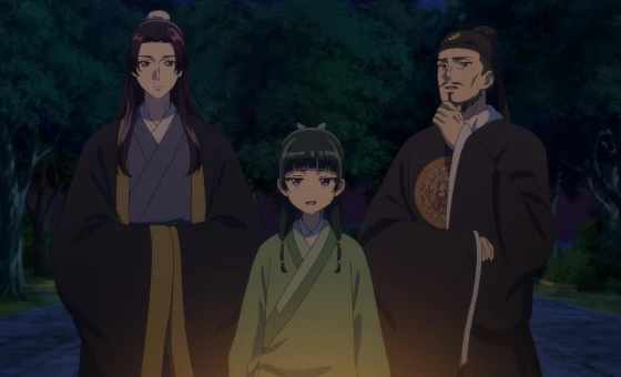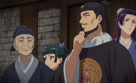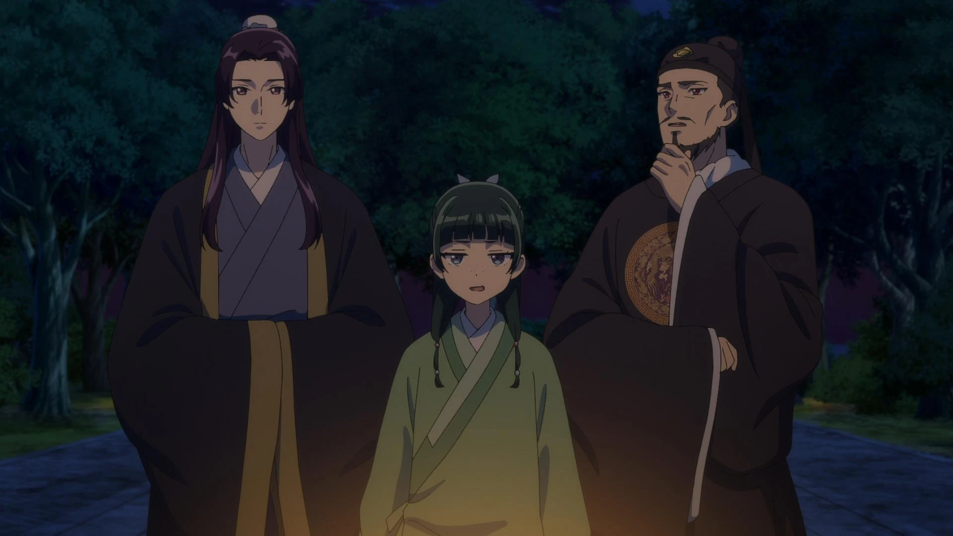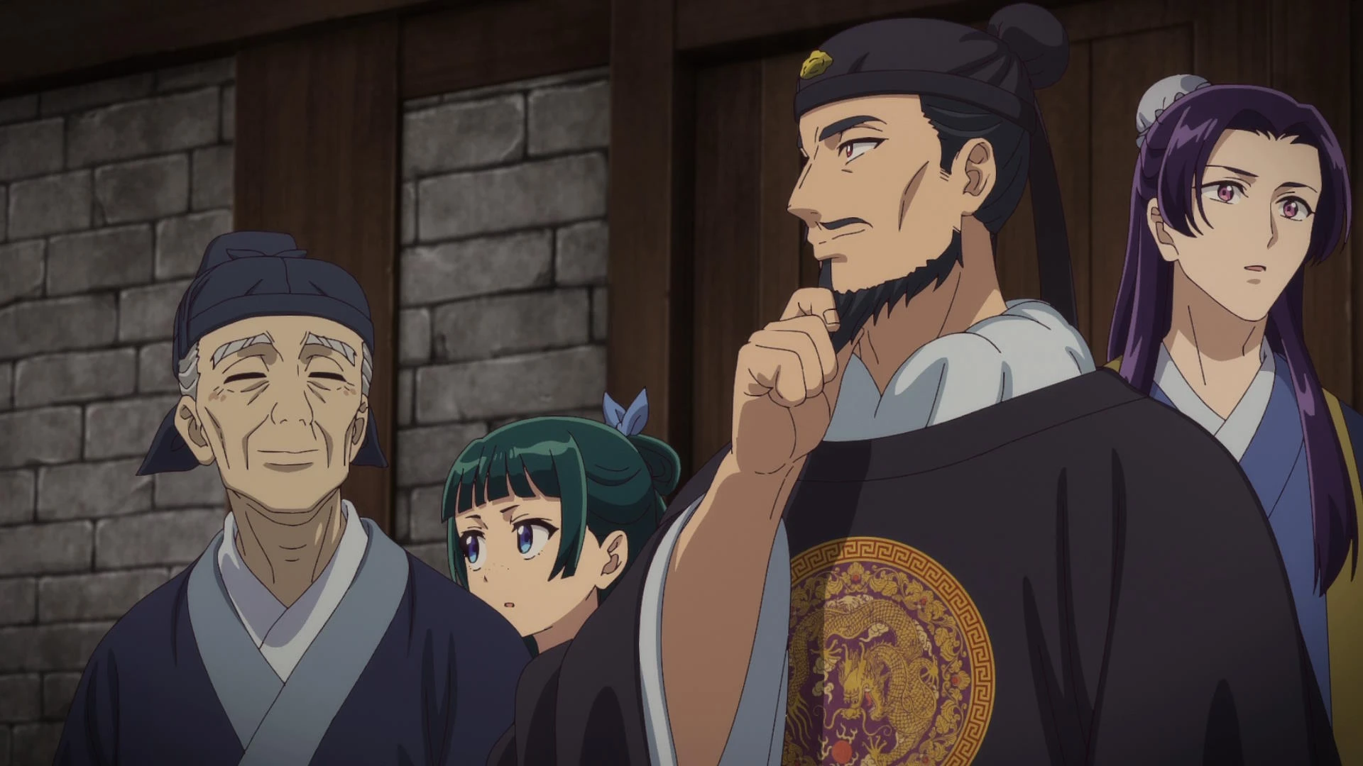 Маомао тем временем наблюдает за тем, как обучаются грамоте остальные служанки. Среди них и Сяо Лань, которой безумно скучно впитывать склонения по падежам и спряжения глаголов. Так муторно, что аж клонит в сон. Но хорошо, что вовремя звенит звонок. Сяо Лань покидает класс и замечает нашу героиню. Бежит ее поприветствовать, а затем предлагает пройти в здание, где разместил свой кабинет директор. Подходя к двери «директорской» наша Маомао замечает храм неподалеку — старый, но все еще ухоженный. И даже деревья и газон подстрижены. Но странно, что для храма это здание имеет необычную архитектору. «Слишком уж оно вытянутое», — делает вывод травница. Помимо формы, оно сильно отличается внешними атрибутами. Так, будто архитектор был не из этих мест. Увидев задумчивую Маомао, директор решает к ней подойти. А после видит, что взгляд девушки устремлен прямиком на храмовый комплекс. Старик не дожидается вопроса и сразу отвечает, что здание построили еще до появления здесь первых народов. Великая Императрица (первая из рода нынешнего Императора) распорядилась оставить храм как он есть. Лишь с годами он слегка изменился, потому что ему требовался ремонт. Легенда гласит, что в тот год великих завоеваний Ее Превосходительство понесла сына. А когда он подрос и был готов взойти на престол, мать-императрица велела ему пройти лабиринт испытаний, который находится как раз в сооружении древних людей. Если он выберет правильный путь и не заплутает, так и быть, носить ему гордое звание императора. Ежели нет, не быть этому. К удивлению, не шибко умный, но ловкий наследник прошел проверку. Но после испытания этим храмом не пользовались больше никогда. Да и при жизни нынешнего там никого не бывало.