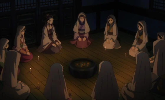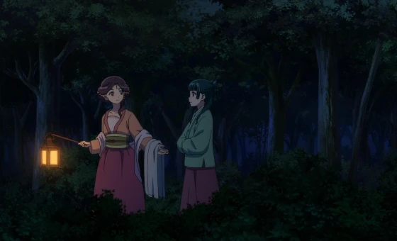 А поскольку Ин Хуа «помогла» решить вопрос с жилищем (пускай, и сама его поставила), то Маомао теперь «должна» ей. И сегодня вечером, когда на небе взойдет Луна, Ин Хуа кое-куда отведет нашу героиню. Идти недалеко, но место это дико любопытное.